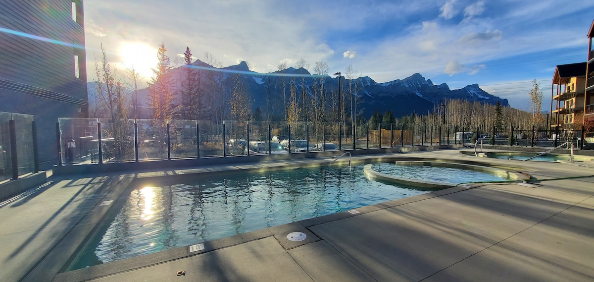 Welcome to Cascade Chalet a BRAND NEW Luxurious Mountain Chic retreat with a gorgeous mountain view. This retreat is tailored for families and couples seeking a relaxing escape. Located close to shops, restaurants and trails. Guest will enjoy: →Fully Equipped Kitchen with 8+ person dining table and Nespresso → YEAR ROUND pool and hot tub →7-min drive to Banff (FREE use of park pass) →In-suite laundry →FREE PARKING →Private Patio & BBQ with Mountain views →Mountain themed kids playroom