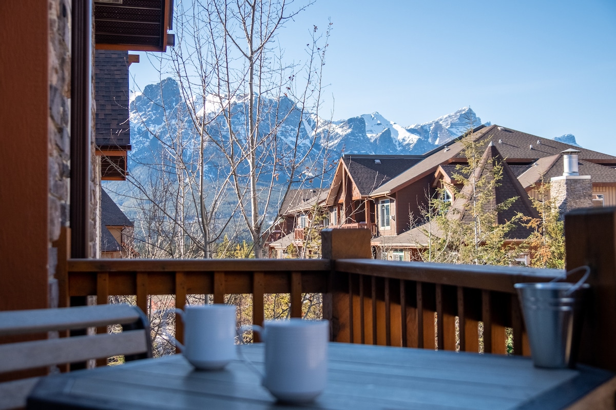 *Parkade closed mid-April–late May; street parking only.* Our beautiful condo is located in one of Canmore's top resorts with year-round access to the hot tub & heated pool. We're a 20-minute walk from downtown Canmore with hiking & biking trails nearby. Looking for a home away from home? Our condo is fully stocked to cook all your meals, with a comfy king bed, patio access & stunning mountain views overlooking the pool/hot tub. Stay a while, you'll love it!