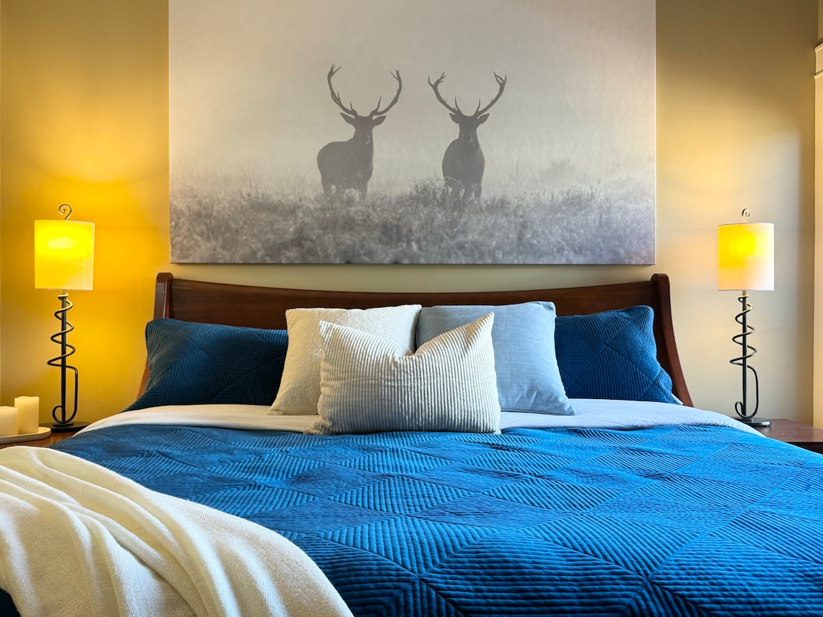 Welcome to our one bedroom, one bathroom unit. This spacious one bedroom suite is great for 1-4 people. A modern kitchen with wine fridge, and granite counter tops is ideal for gathering & entertaining. The living room is accented by a cozy fireplace and elegant sofa that turns into a bed. The master bedroom features a king size bed, personal TV and a gas fire place.