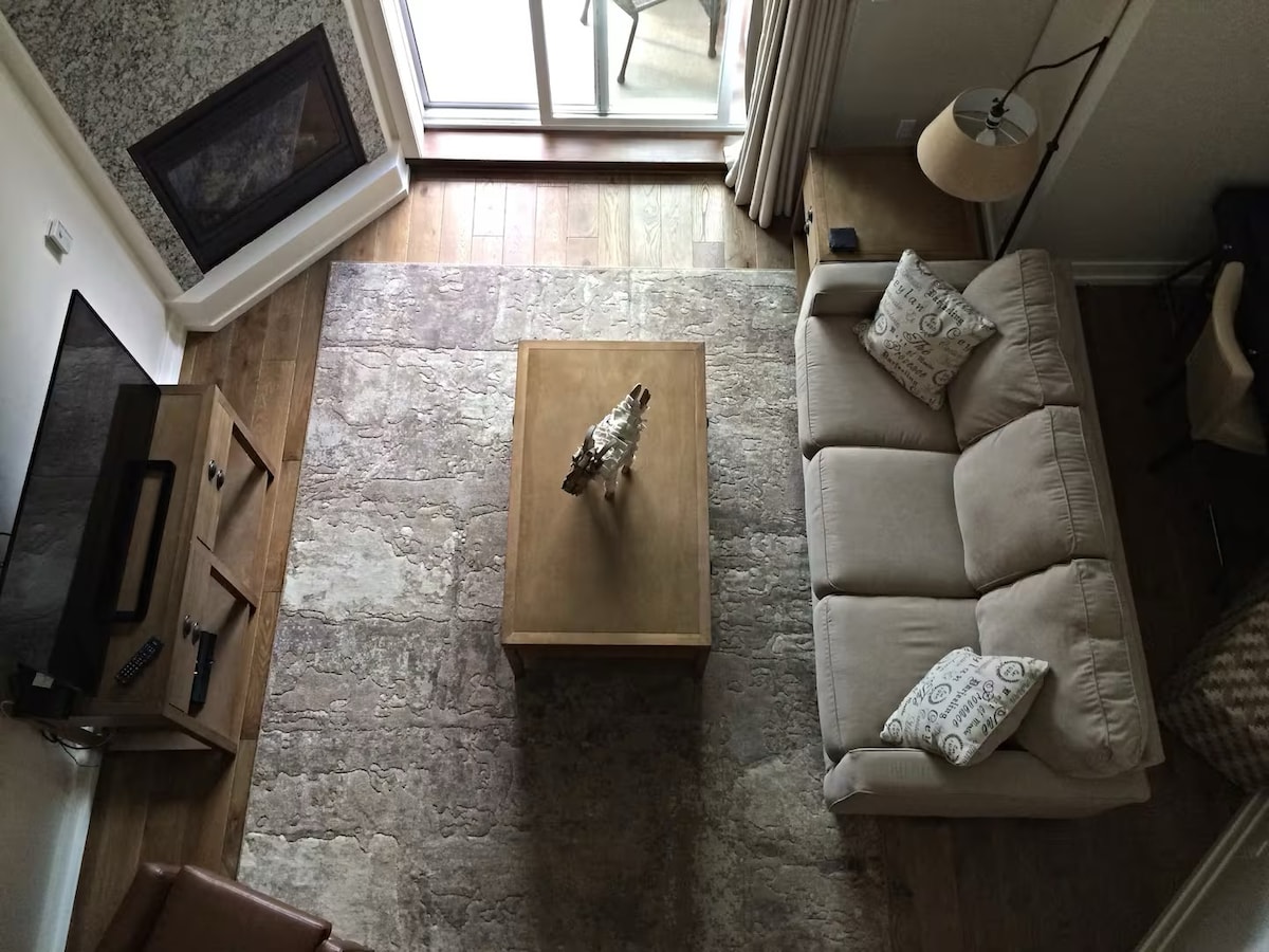 Cosy South-facing 1 bed 1 bath Condo w. mountain views; 10 min. walking distance from downtown; Recently renovated and fully equipped with new furniture, Air Condition, 2 flat screen TVs, High Speed Internet and much more. Pull-out sofa bed in living room for 3rd and 4th person. Underground parking stall; Guests can use next door indoor pool w. water slide, hot tubs and gym at no cost. Wood Flooring, granite kitchen counter tops and gas fireplace for mountain feel. Deck with BBQ and views.