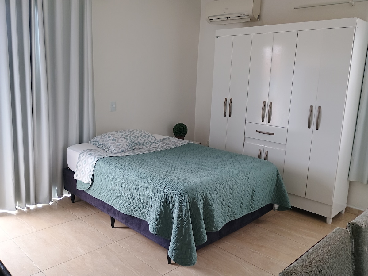 Suíte e cozinha em um só cômodo. Localizada entre as praias de Floripa e Governador Celso Ramos. Próximo (1 m) de Mercado, Padaria, lanchonete, restaurante, polícia civil, parada de ônibus e comércios em geral. Poucos minutos da academia (2 m), universidade Univali e Centro de Biguaçu (6 m). Há 8 minutos da praia Balneário São Miguel em Biguaçu. Estou por perto para ajudar. * Não é possível fazer check in nos seguintes horários: Quarta feira das 19:15 às 21:30 e Sábado das 18:15 às 21:15.