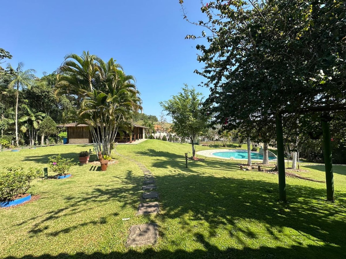 O sítio está localizado na Grande Florianópolis/SC, na àrea rural de Biguaçu, em Três Riachos. Casa climatizada, com varandão. Sala e cozinha conjugadas com pé direito duplo, lareira, churrasqueira e fogão a lenha, 4 quartos sendo 1 suíte. Lavanderia, garagem coberta p/ 2 carros e área de jogos c/ sinuca, pebolim e hockey. Parque infantil, quadra poliesportiva iluminada, piscina, 3 baias para cavalos, torre mirante para a paisagem, riacho natural, lago com carpas e árvores frutíferas.
