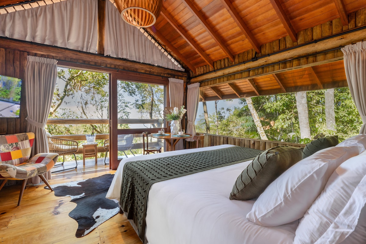 Recanto do Sossego 101 A CABANA MIRANTE Viva momentos inesquecíveis neste lugar único e ideal para relaxar com sua família. Não é só uma cabana mas uma experiência única em meio a natureza no litoral catarinense. Unindo o rústico ao sofisticado, essa cabana é o ambiente ideal para uma hospedagem com conforto em meio a natureza. Além de aconchegante, oferece uma vista deslumbrante das montanhas, perfeita para aproveitar dias românticos a dois ou em família.