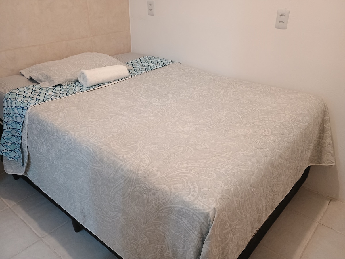 Suíte e cozinha em um só cômodo. Localizada entre as praias de Floripa e Governador Celso Ramos. Próximo (1 m) de Mercado, Padaria, lanchonete, restaurante, polícia civil, parada de ônibus e comércios em geral. Poucos minutos da academia (2 m), universidade Univali e Centro de Biguaçu (6 m). Há 8 minutos da praia Balneário São Miguel em Biguaçu. Estou por perto para ajudar. * Não é possível fazer check in nos seguintes horários: Quarta feira das 19:15 às 21:30 e Sábado das 18:15 às 21:15.