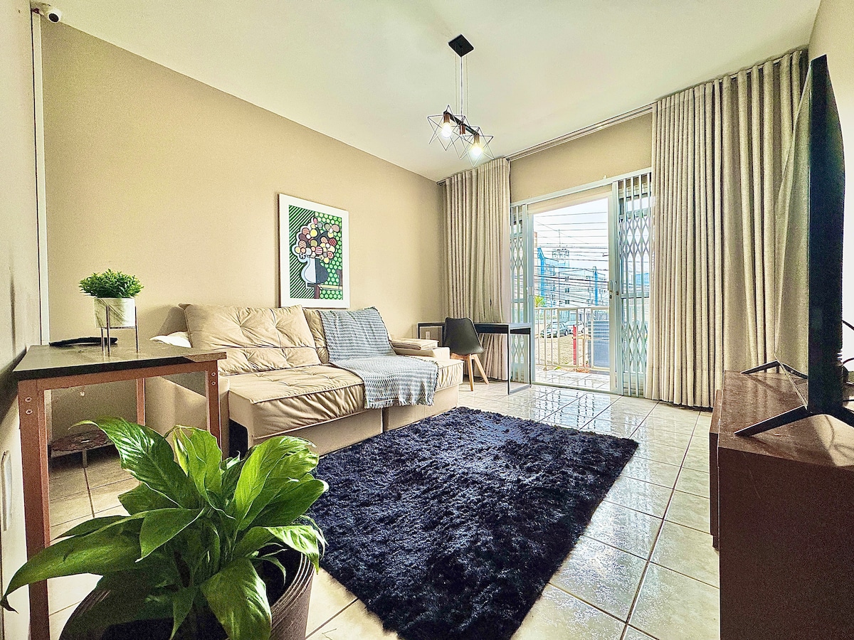Imagine um apartamento de praia aconchegante, com vista para as montanhas e uma atmosfera relaxante. A decoração é leve e acolhedora, inspirada em tons neutros e azulados, remetendo ao oceano. Nosso espaço foi pensado em proporcionar momentos de conforto, em um ambiente acolhedor, sinta-se em casa . Nosso apartamento está bem localizado com acesso ao transporte público gratuito, aonde te possibilita fácil acesso a qualquer praia, também está localizado próximo ao mercado mais em conta da cidade