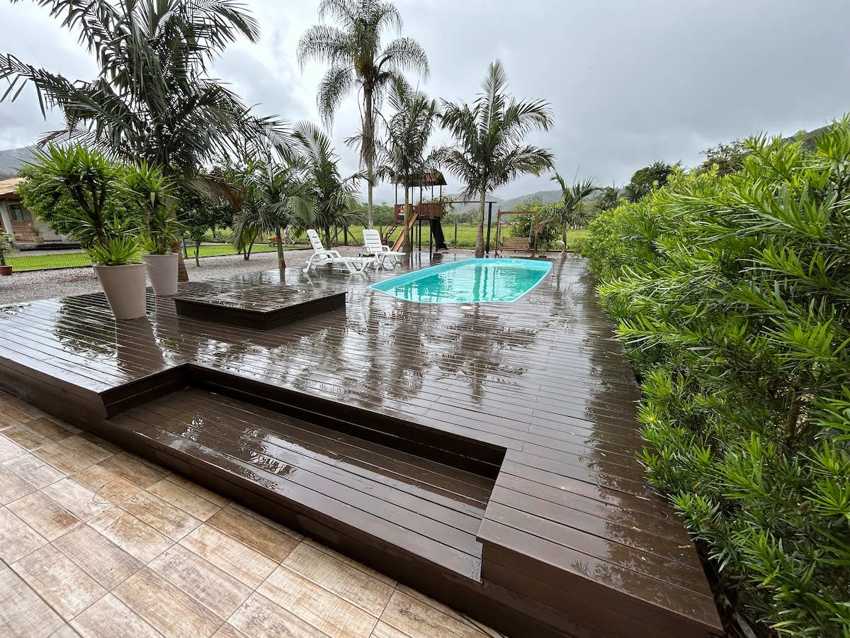 Casa de sítio espaçosa com 3 suítes (duas com cama queen e uma de casal), cozinha completa e sala com TV de 55’’. Quartos com ar-condicionado e varanda. A 20 minutos do centro, o local oferece paz e tranquilidade, cercado pela natureza. Relaxe com o som das cachoeiras particulares na propriedade, onde é possível tomar banho. Aproveite piscina, deck com churrasqueira e a horta disponível. Garagem coberta para dois carros e pátio grande para mais carros. Aprox. 1:30h de praias. Ideal para famílias