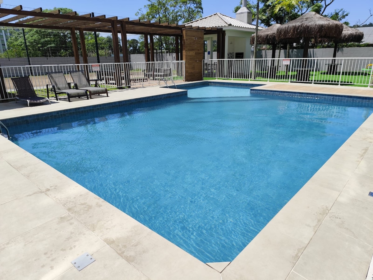 A suíte conta com varanda e hidromassagem. Acomoda 2 adultos em uma confortável cama queen e até 2 crianças em camas auxiliares (sem cobrança de taxas). O acesso é fácil e seguro, com asfalto até o condomínio. Aceitamos pets de pequeno porte com algumas regrinhas: não subir em sofás, camas ou poltronas. Obs 1.: no inverno, piscina em manutenção. Obs 2.: condomínio com casas em construção, o que pode gerar barulho durante a semana (final de semana não há trabalho de construção)