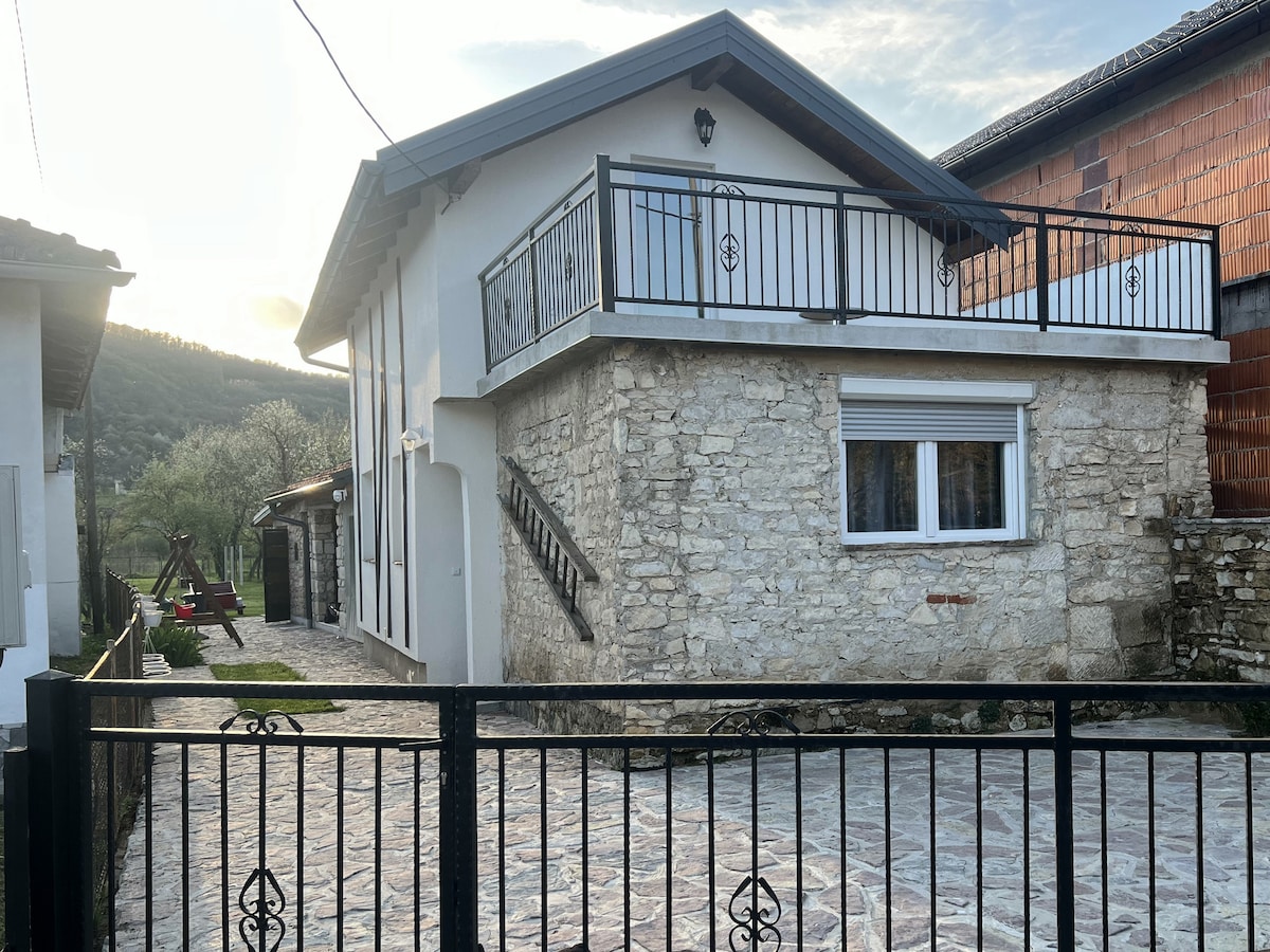 Welcome to our peaceful and unique house by the river centrally located in Bosanska Krupa! It's surrounded by amazing nature and offers breathtaking views. The house has 2 bedrooms, 1 bathroom, 1 toilet, a fully equipped kitchen, a living room and a spacious garden. You will have access to the entire place.