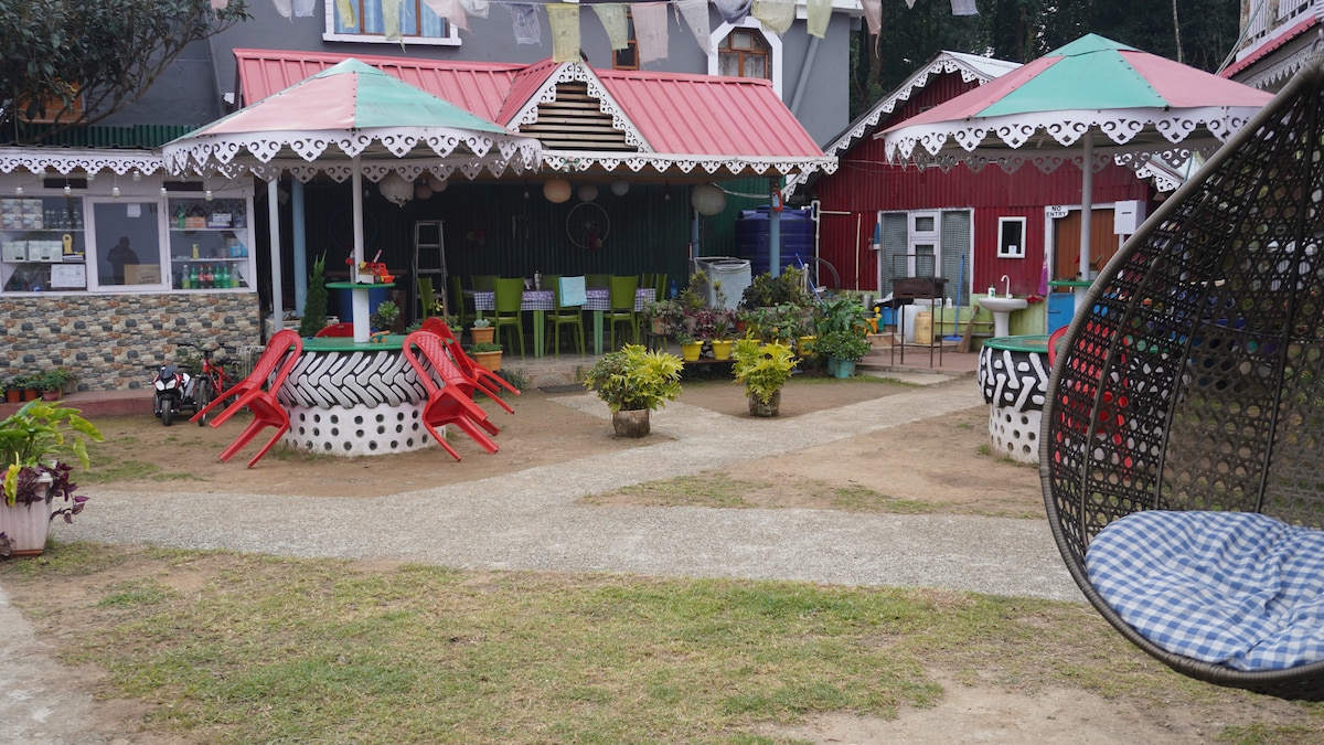 Imagine a cozy cottage nestled in the serene of Lebong tea garden, Darjeeling, surrounded by lush green mountains and tall, majestic trees. Inside, a crackling indoor fireplace adds warmth and charm to the ambiance, casting a gentle glow over the room. As you step outside, a well-tended lawn is adorned with vibrant plants, creating a picturesque setting of peace and tranquility. This idyllic cottage offers the perfect escape into nature's embrace. Please talk to me before you book with me ❤️
