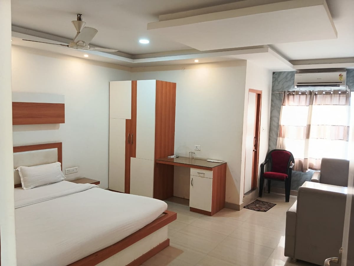 Experience premium hospitality in our elegantly designed Suite Room at Shree Ram Resort. This spacious suite is perfect for couples or business travelers seeking comfort and style in Bihar Sharif. Featuring a plush king-size bed, modern interiors, attached washroom and balcony. As our guest, you enjoy full access to our sparkling swimming pool, a fully-equipped gym, and a vibrant indoor games zone. Whether you're here to unwind or stay active, our resort offers the perfect balance.