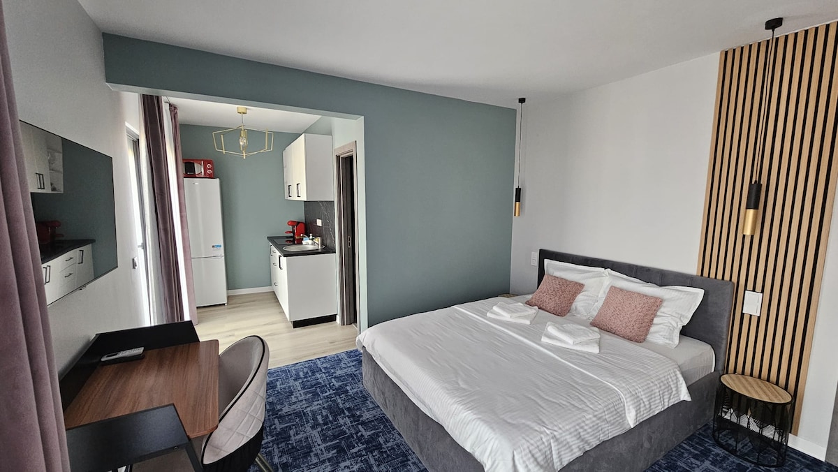 Unitatea de cazare oferă o bucătărie comună pentru oaspeți. Cel mai apropiat aeroport este Aeroportul Internațional Oradea, situat la 3 km de aparthotel, iar gara se află la o distanță de 4 km.