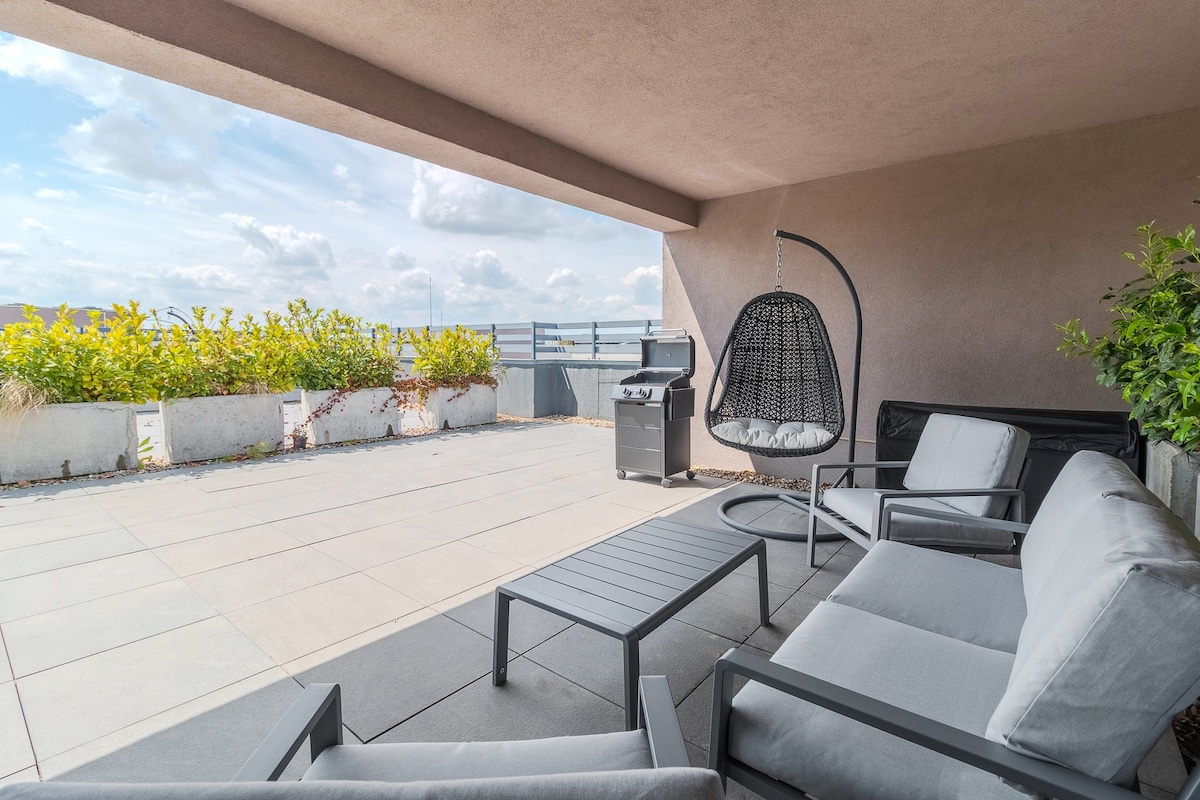 Enjoy this elegant and spacious penthouse just 10 minutes from the city center and steps from the river. With a stylish open living area, fully equipped kitchen, serene bedroom, chic bathroom, walk-in closet, and a sunny terrace, this apartment offers both comfort and luxury. Ideal for couples or remote workers seeking peace, design, and proximity to Oradea’s main attractions.