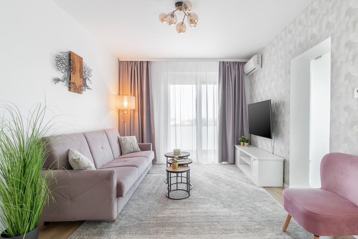 This stylish place to stay is perfect for couple or family trips. This new and modern aparatment is located in a quiet area in the heart of Oradea, in ARED rezidential area. The apartment is lovely furnished and is composed of a bright bedroom with a queen-size bed, a spacious open living room with a fully equiped side kitchen and a modern counter top. There are 2 smart TV with cable TV system. There is also a working place with a wide desk and fast internet connection and a spacious balcony.