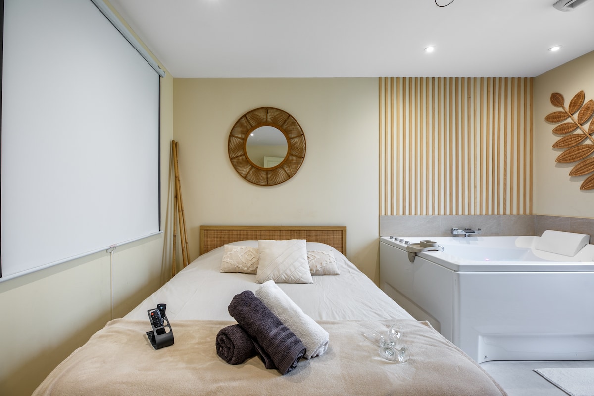 Découvrez un cocon intime et apaisant dans un appartement cosy avec une balnéothérapie, idéal pour des moments de détente a deux L’atmosphère chaleureuse crée une vraie parenthèse bien-être. Idéalement situé, à quelques pas des transports en commun pour rejoindre facilement le centre de Rouen. Un refuge parfait pour se ressourcer en toute tranquillité. un havre de paix vous attend Table de massage avec huile pro en option