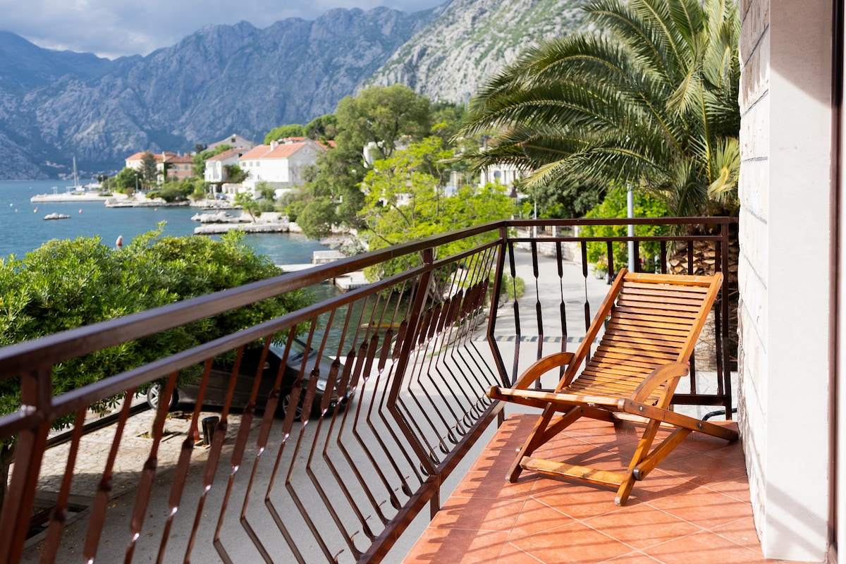 Beautiful panorama view over bay of Kotor, harbor and old town is the first impression you will get from this 53m2 apartment. During the stay you will enjoy in outstanding view of luxury cruse ships during early morning arrival or late afternoon departure from port of Kotor. This is completely new apartment located inside luxury residential complex , apartment is fully equipped with free parking , free wi-fi and fully equipped kitchen. Distance is 500m from the sea and 1.5km from downtown.
