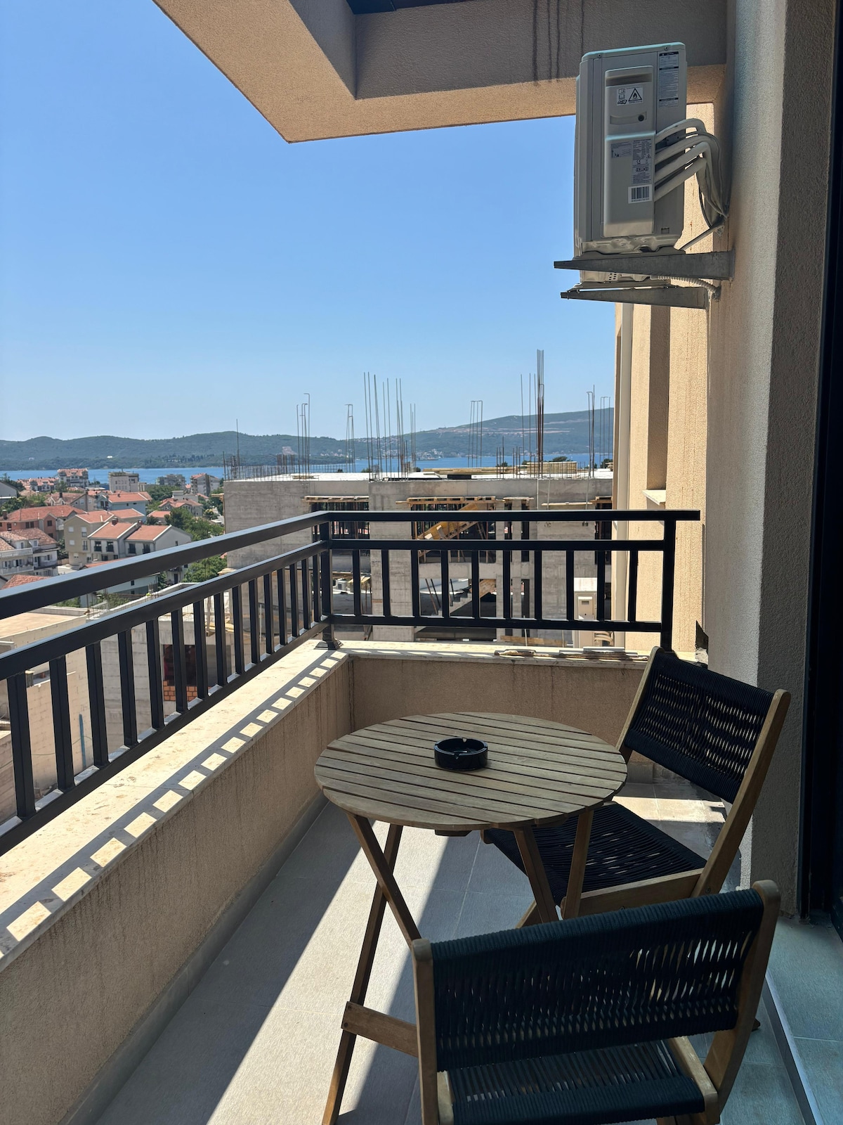 Tastefully decorated Green Studio apartment with sea view from balcony. Fully-equipped with A/C, LCD TV, WIFI, BBQ, hairdryer, beach towels..providing you with comfort and everything you may need for relaxing & enjoyable vacation in Montenegro. Deluxe Green Studio apartment located first line from the sea has a large sunroof terrace of 140m2, offering a magnificent view of the bay of Tivat. Beach is located a short walking distance from Green Apartments, just on another side of street!