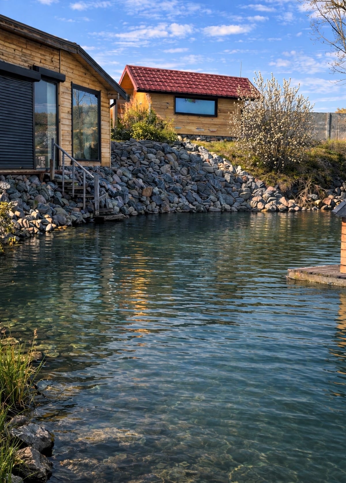 Уютный домик под Киевом прямо на берегу озера — идеальное место для спокойного отдыха. Тишина, живописная природа, ухоженная зеленая территория. В доме есть кухня, санузел, отопление, панорамные окна и терраса для утреннего кофе. Можно заниматься спортом, устраивать барбекю, наслаждаться видом и прогулками на природе. Комфортно, красиво и идеально для семьи, друзей или романтических выходных!