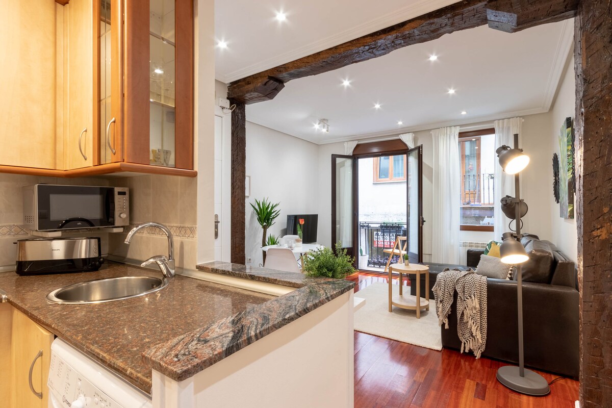 Beautiful flat, NEWLY RENOVATED, with wood rafters at the heart of the OLD TOWN. Balcony to Somera st. (where you can spot the church of San Antón), in one of the most cheerful streets of Bilbao and about 200m from the Ribera Market. Double glass windows make a very SILENT flat, with the rooms located at the end of the place and comfortable mattress, all together, you'll have for sure a good rest. Perfect place for visiting Bilbao on the most traditional area of the city.