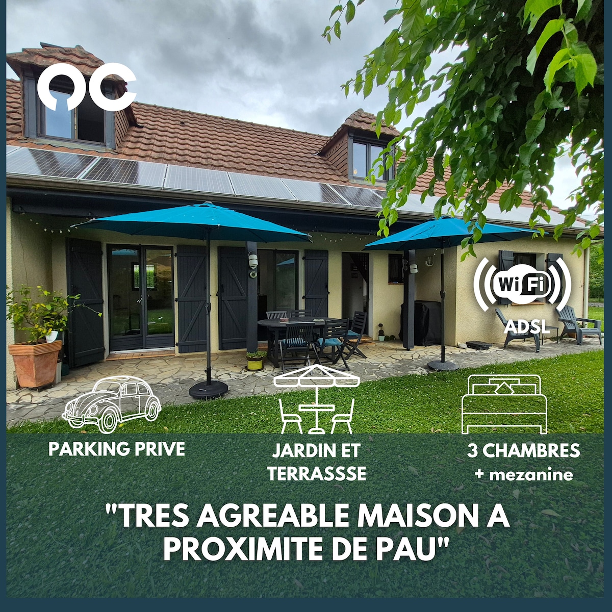 Bienvenue dans notre maison sur les coteaux de Jurançon. Elle vous offrira tout le confort dont vous avez besoin pour passer un séjour agréable dans notre région. Vous aurez un accès facile à de nombreux chemins de randonnée à proximité, vous permettant d'explorer les magnifiques paysages de la région et de profiter de la nature environnante. En seulement 10 minutes, vous pourrez rejoindre le centre-ville de Pau. En 1h/1h30 vous avez accès à la côte landaise, basque mais aussi la montagne.