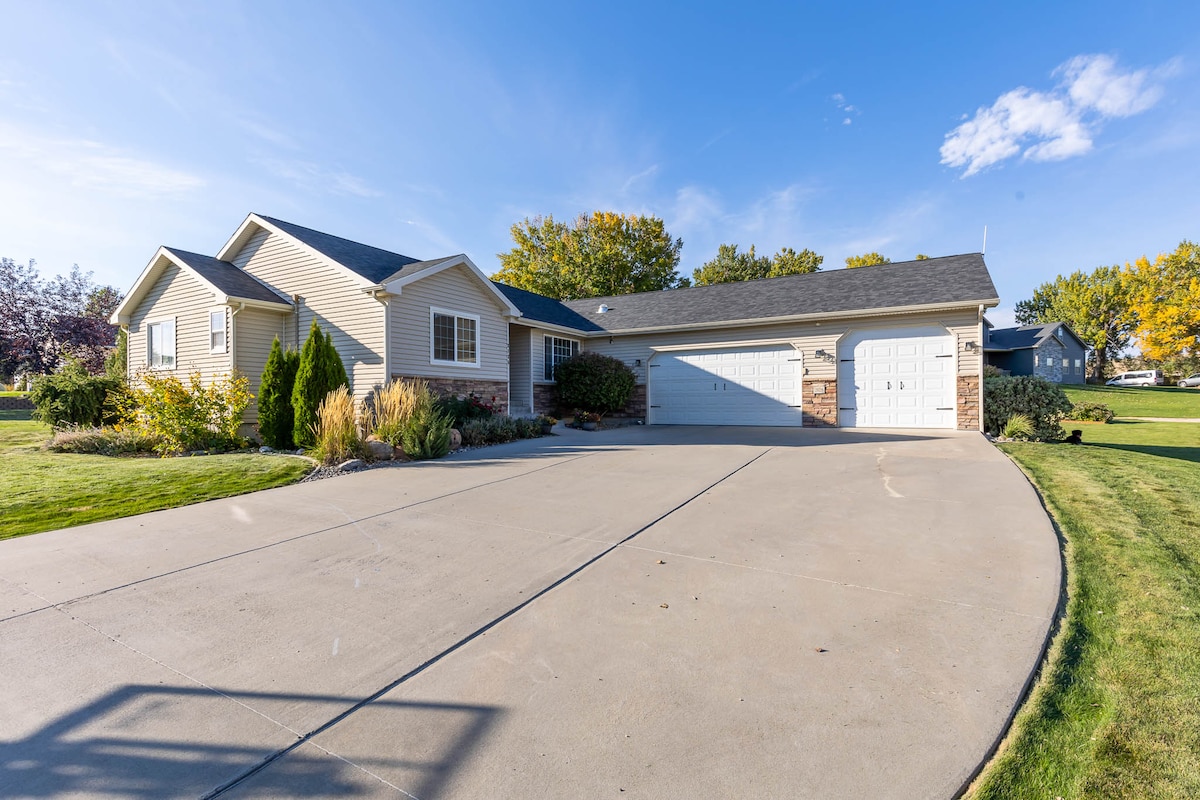 New updates and furniture! Family-friendly! -5 BR 3.5 BA -7beds -use of 2car garage -Central location: 2 minutes from I-90 -Couple minute walk to Yellowstone River and trails to Norm's Island -Master KING bathroom has a 2-person soaking tub, fireplace, smart TV OTHER four bedrooms: 7 total beds Walk-in closets Living area - smart TV/fireplace Basement rec room with fridge & smart TV Patio with fire pit and grill Enjoy close access to dining, shopping, restaurants, and recreation!