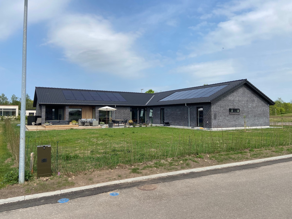 Modern Home Near Billund Center – Quiet & Central Stay in a bright, renovated villa by the scenic Billund Bæk stream, just minutes from LEGO® House and downtown. Features 3 bedrooms, open living/dining area with fireplace, private garden with terrace, and free on-site parking. Walk to shops, cafés, and attractions. Ideal for families, business travelers.