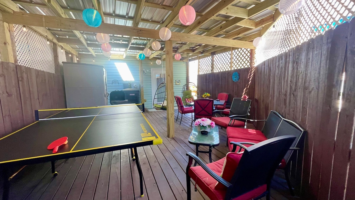 Escape to our newly remodeled townhouse, just a 5-minute walk away from the beach! Our 3-bedroom, 3-bathroom home features a unique private COVERED patio deck with 2 egg chair swings, with Smart TVs in each room, beach essentials, and a BBQ grill. We are also the #1 closest townhouse to the community swimming pool, perfect for a refreshing swim. Book now and enjoy a peaceful beach getaway at our beautiful townhouse! Note: We have a strict no pets policy due to server health allergies