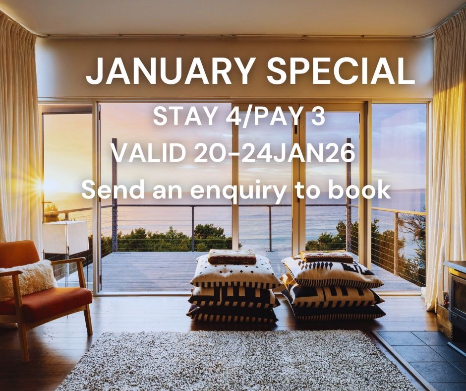 Kalinda is a beachfront log cabin style home, with cathedral ceilings and a loft bedroom, with the amazing Four Mile Creek Beach on your doorstep. It is the perfect location to explore what Tasmania's East Coast has to offer, from The Bay of Fires, down to Bicheno and everything in between. The space is set up with couples in mind to relax and enjoy the beachfront atmosphere in a cozy accommodation, with beautiful gardens and bird life a plenty.