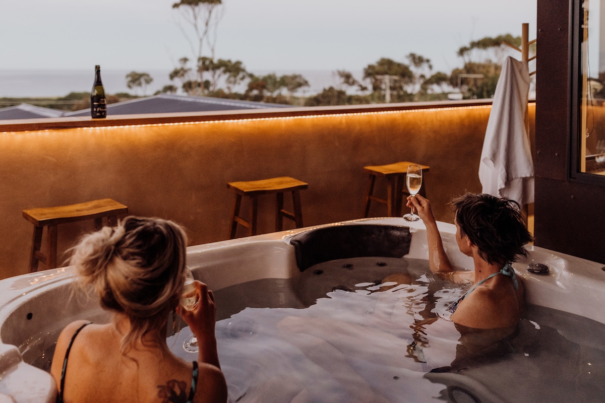 Wood fired hot tub anyone? Little Beach Villas unsurpassed in their quality, design and interior design fitout. Kick back and relax in this tranquil space or sit in the hot tub and spot whales and dolphins passing by. Have the best nights sleep with these Times Square mattresses and admire the beautiful art on the walls. A fully kitchen with oven, cooktops & BBQ on the deck overlooking the ocean. A la carte french style Breakfast is served in the barn which is some 200m from your villa.