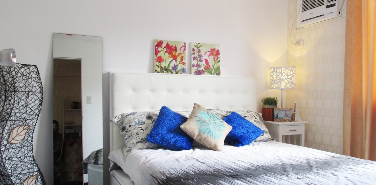 Take a break from the city within the city ON A BUDGET. If you are looking for a place to spend time with your loved ones without moving out of the Metro, this is the perfect place to be. Feel the breeze of fresh air upon entering the gate as you will be welcomed by pine trees giving you cool vibes of Tagaytay and Baguio. The unit features a balcony, laundry area, kitchenwares, 50" Smart TV, a king size bed and other amenities you need for your full staycation experience.