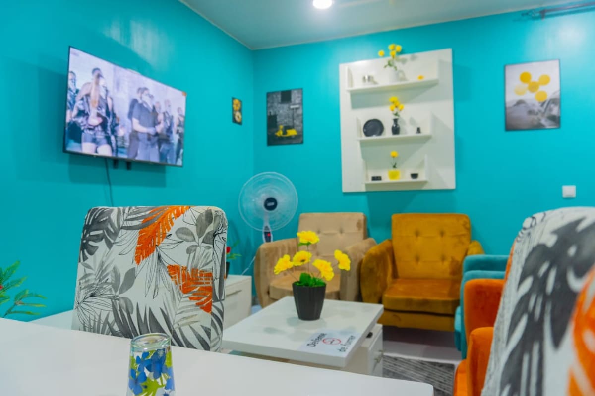 Jolie villa familiale avec piscine privative située dans un quartier calme en plein centre d'Abidjan. C'est une villa de deux chambres, avec un grand salon et un rooftop très agréable avec une piscine juste en face. Il s'agit d'une propriété qui comporte deux maisons séparées par un grand jardin. L'accès pour les voyageurs se fait de façon indépendante et la piscine est à votre entière disposition au cours de votre séjour. Le salon et les deux chambres sont climatisées.
