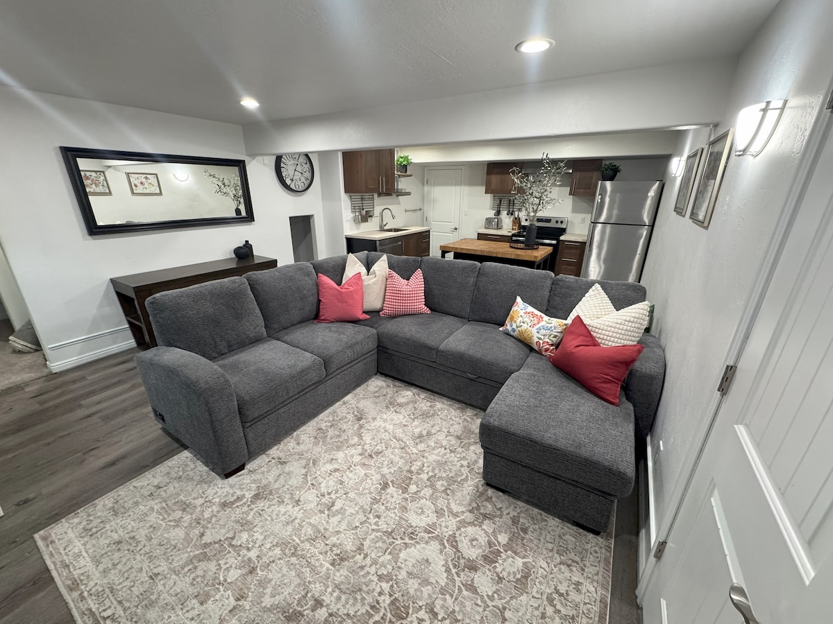 Newly finished basement, open concept with fully equipped kitchen, dining table, living room, and laundry. Private entry with self check in and dedicated parking spot.Fast internet. Your whole group will enjoy easy access to everything from this centrally located rental. We are located about 2-5 minutes from grocery and retail shopping. About 30 minutes to Salt Lake City and Provo with quick access to the SLC airport (25 min). 40 minutes to ski areas. Neighborhood is quiet and close playgrounds.