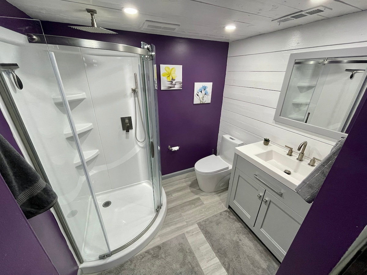 Here you can relax with the whole family or it’s a perfect getaway for 2. From Spring to late fall we’ll have mini goats and free range rabbits & chickens. The creek is perfect for tubing on a hot summer day.Have a picnic in the trees next to the water.Just a mile away is an ice cream/petting zoo and greenhouse with amish gifts. Next door is our operating hobby farm with donkeys, sheep alpacas, goats and chickens.If you’re looking for a nice relaxing retreat, we have what you’re looking for.