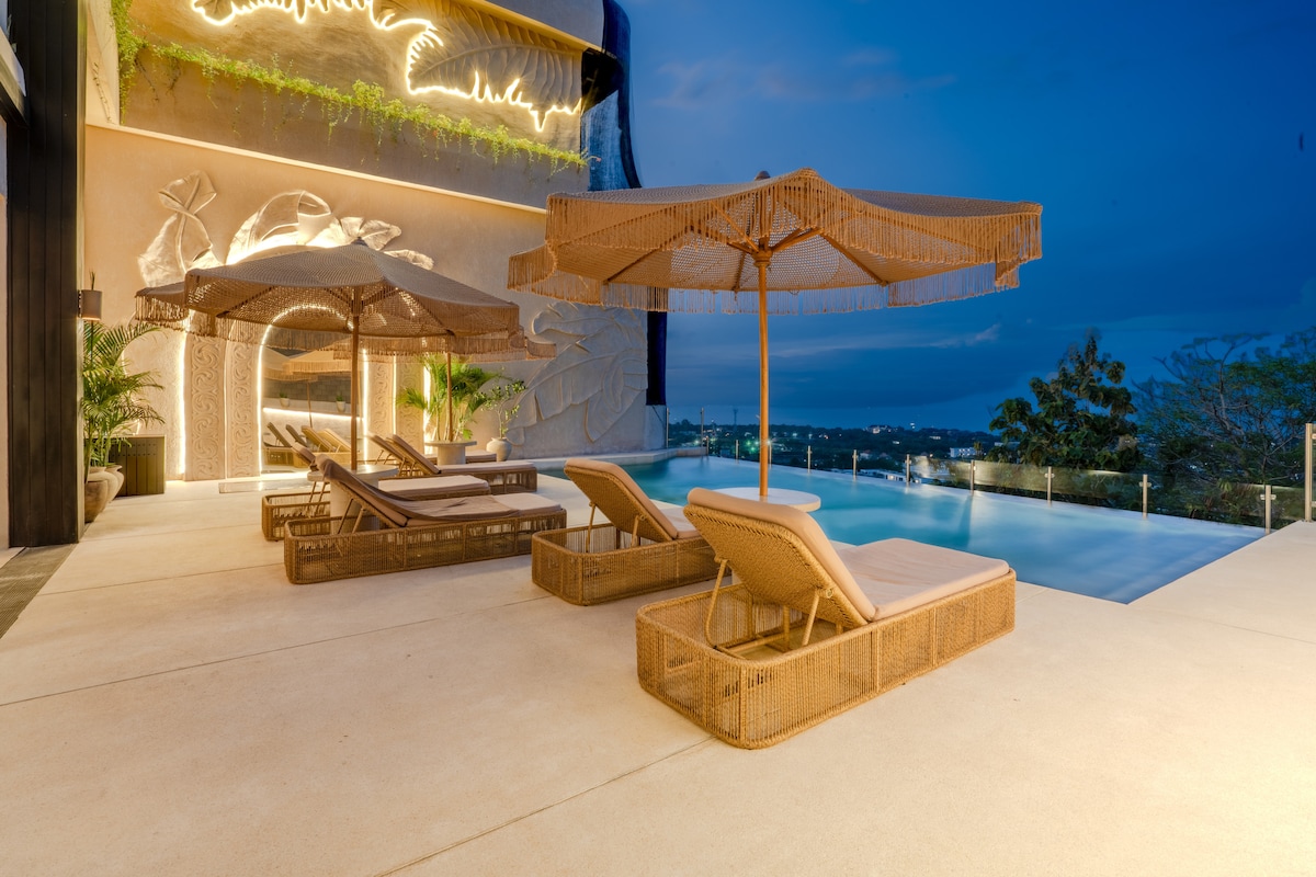 Escape to Thomas Beach Residence, an adults-only Mediterranean-style residence near Uluwatu. Designed for couples, honeymooners, or surfers, each 1-bedroom apartment features an ensuite bathroom, a cozy living room, a kitchenette, a shared pool, and is close to Padang Padang, Bingin, and Dreamland. Please note nearby construction (may cause noise from 7 AM– 5 PM) and a rough access road leading to the residence. Extra care is advised for scooter riders.