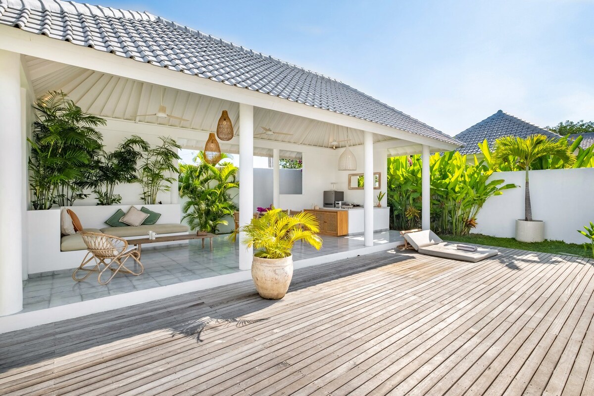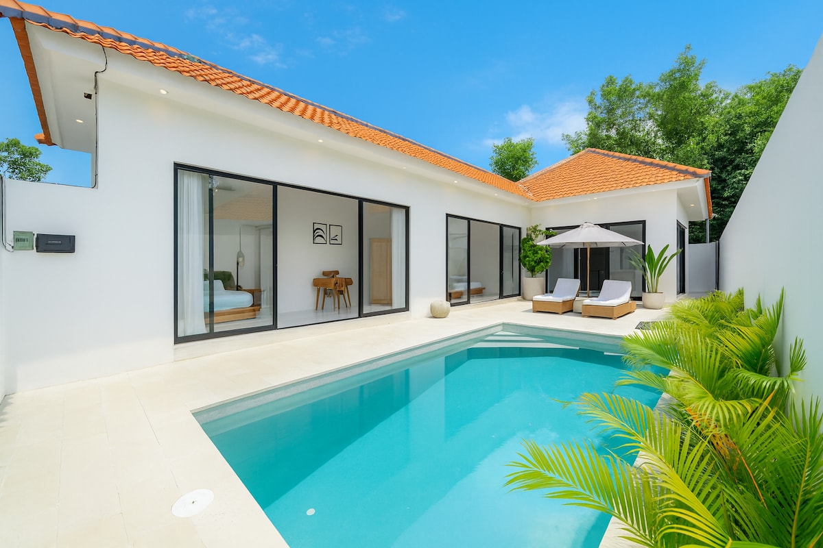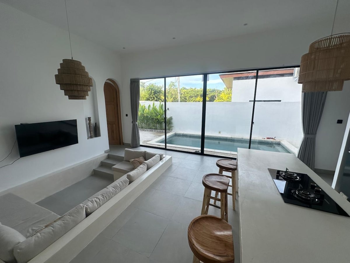 Brand New Designer Villa in Peaceful South Bali • 1 stylish air-conditioned bedroom with en-suite bathroom • Large swimming pool surrounded by tropical greenery • Bright open-plan living room & fully equipped modern kitchen • 300 Mbps Wi-Fi for work & streaming • Netflix & PS5 on request • Large outdoor terrace perfect for BBQs & lounging • Daily cleaning with fresh towels & linens • Baby cot & high chair on request • Concierge service for airport transfers, scooter rentals, spa bookings & more