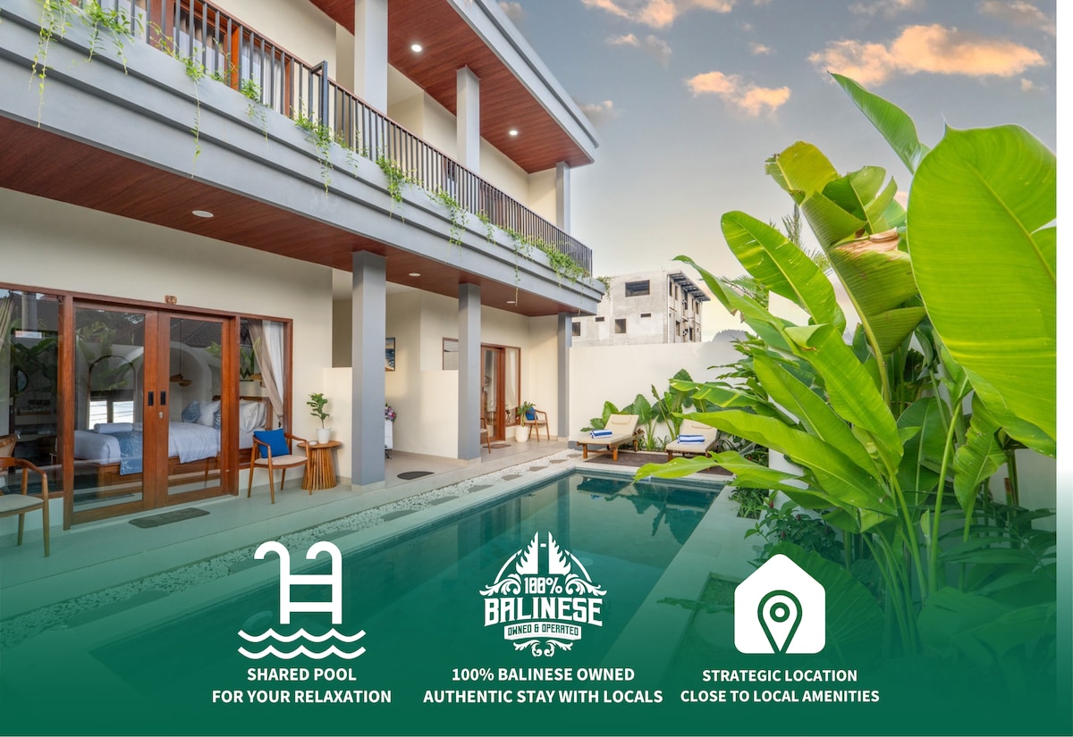 100% Balinese Owned - Authentic Stay With Locals Discover a serene escape in Uluwatu at our guesthouse, where modern comfort meets coastal charm. Just minutes drive from iconic surf beaches, our guesthouse offers tranquility with spectacular views, and a rooftop with panoramic vistas. Perfect for solo travelers, couples, or small groups, it's the ideal base to explore Bali's vibrant culture. Key Features: - Bedroom w/ AC - Charming shared pool - Shared kitchen - Rooftop w/ sunset panorama