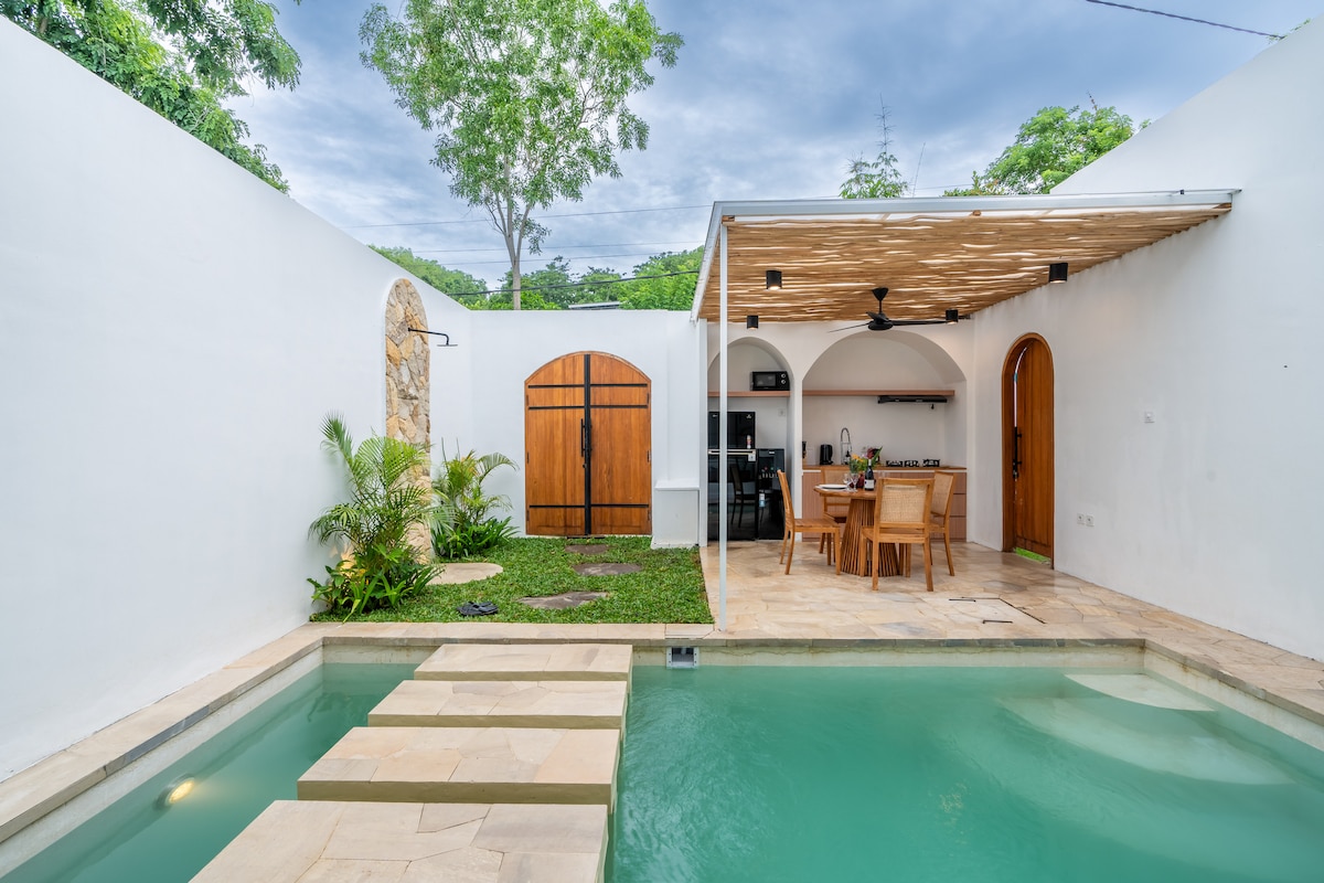 Escape to your private tropical sanctuary—designed with romance and relaxation in mind. Nestled in a serene part of Bali, this stylish one-bedroom villa blends Mediterranean-inspired curves with modern elegance, perfect for couples and honeymooners seeking a dreamy getaway. Whether you're waking up to soft sunlight through sheer curtains, dining al fresco under the stars, or enjoying a relaxing soak in your designer shower, every detail has been curated for comfort, style, and connection.