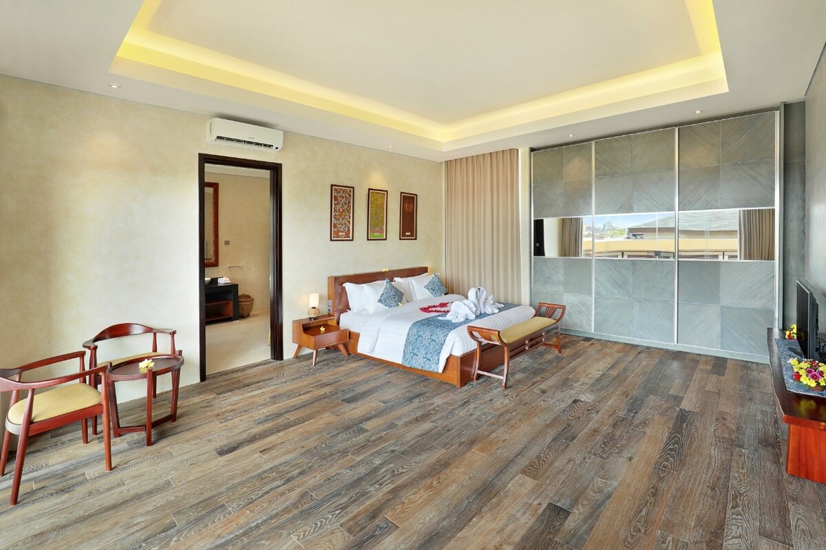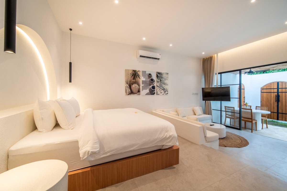 Escape to your private tropical sanctuary—designed with romance and relaxation in mind. Nestled in a serene part of Bali, this stylish one-bedroom villa blends Mediterranean-inspired curves with modern elegance, perfect for couples and honeymooners seeking a dreamy getaway. Whether you're waking up to soft sunlight through sheer curtains, dining al fresco under the stars, or enjoying a relaxing soak in your designer shower, every detail has been curated for comfort, style, and connection.