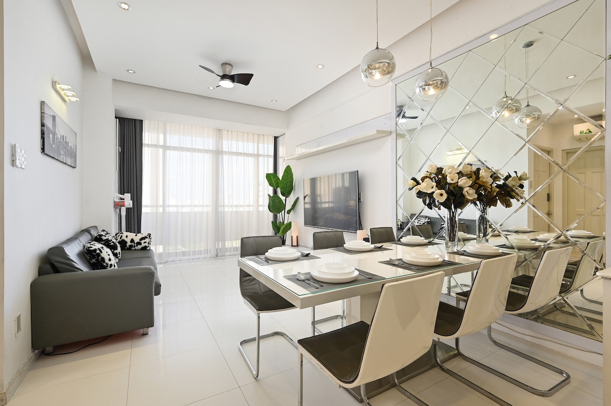 **AIRPORT PICKUP SERVICE AVAILABLE** Stay in our elegant 69m² suite at Serenity Sky Villas, District 3 — offering modern comfort at an affordable price. Welcome to a thoughtfully designed one-bedroom apartment where minimalist style meets cozy living. 🛌 Relax on a queen-size bed with premium linens and enjoy a space perfect for unwinding, recharging, or working remotely — all in a serene and stylish setting.