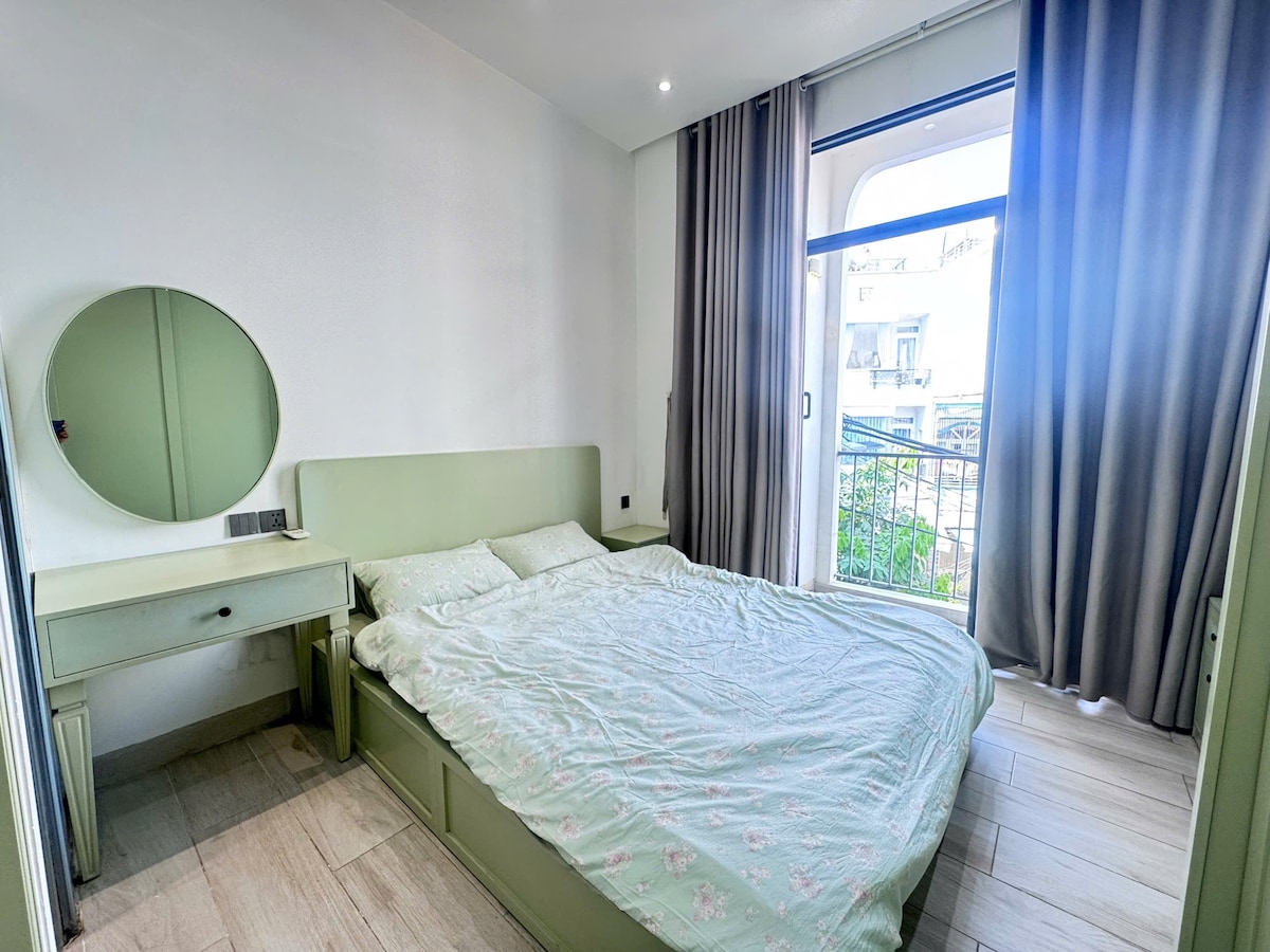 Ivy Room ~ Peaceful Stay in the Heart of Saigon ~ Surrounded by greenery and natural light from large windows, ideal for both short & long-term stays. - What you'll love: •Big window •Quiet, charming alley - relaxing vibe •12 minutes by car from TSN Airport/D1 •Spacious shared kitchen •Washing & drying machines •Motorbike rental •Self check-in •Surrounded by food! - Amenities include: •Elevator •Rooftop terrace •Projector for movie nights •Essentials: hair dryer, toiletries, towels, dental kit