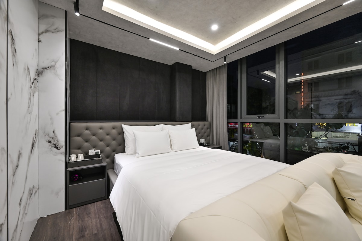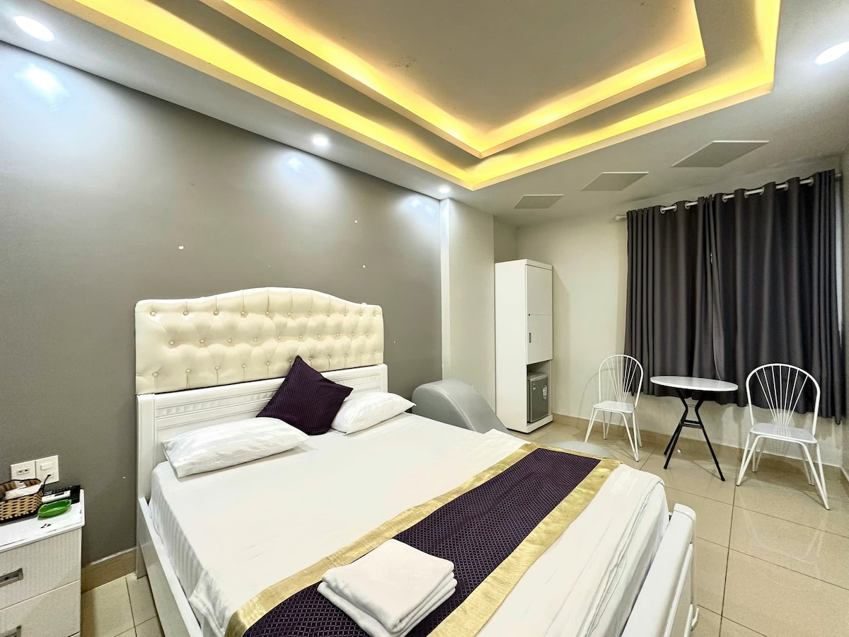 An Indochine-style hotel room located in a boutique hotel near Tan Son Nhat airport offers additional free amenities such as the laundry room, Gym, Sauna, hot-cold purified water, and motorbike parking. With an elevator ride away, the restaurant/cafe/bar offers meeting spots, working space and chill-laxing atmosphere.