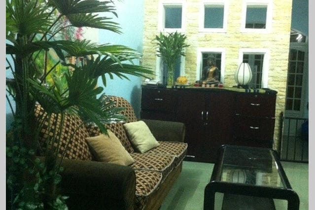 One-of-a-kind, eco-friendly homestay where sustainable living meets luxury. Our 2BR home is furnished with reclaimed wood, recycled materials, offering an environmentally conscious experience without sacrificing comfort. Indulge in our top-notch amenities including swimming pool, gym, a co-working space, etc What truly sets us apart is our commitment to showcasing local artistry. We feature unique artworks that highlight the rich cultural heritage, providing guests with unforgettable experience