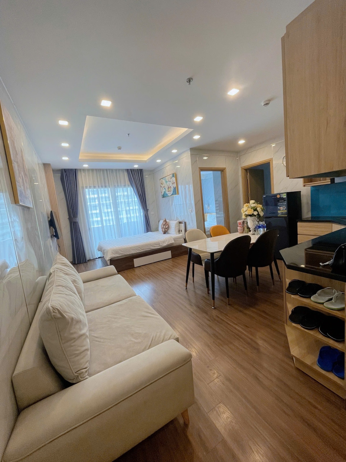 🌊 Wake up to the sound of waves and a stunning sea view from your balcony at this high-rise apartment at TMS Quy Nhon - Hupasearest! This modern and luxurious studio apartment has a private balcony overlooking the sea, perfect for families, small groups or friends traveling together, equipped with: • 2 Queen-sized beds • Smart TV, high-speed Wi-Fi, air conditioning and washing machine • Private bathroom with hot water, toiletries, hairdryer • Kitchenette with fridge, kettle and basic utensils