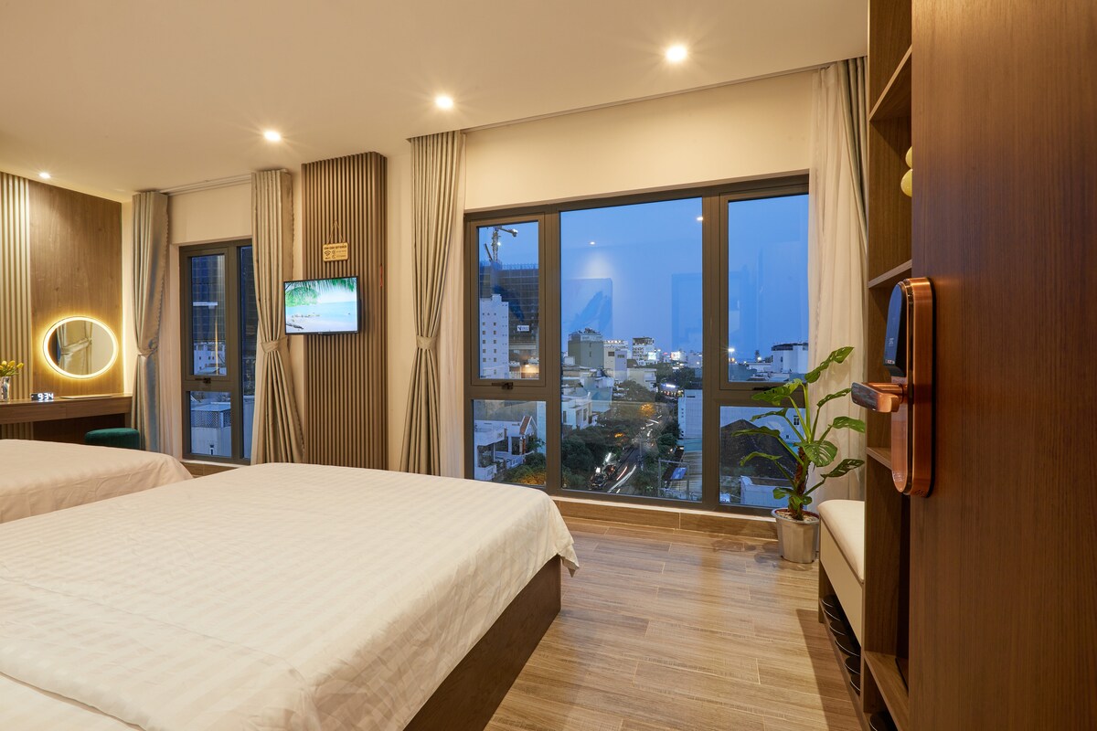 the hotel has built a year, the furniture is new. the hotel is near the Quy Nhon Beach. Guests can see the sea and the city from the top of the hotel. The Hotel is near delicious seafood restaurants