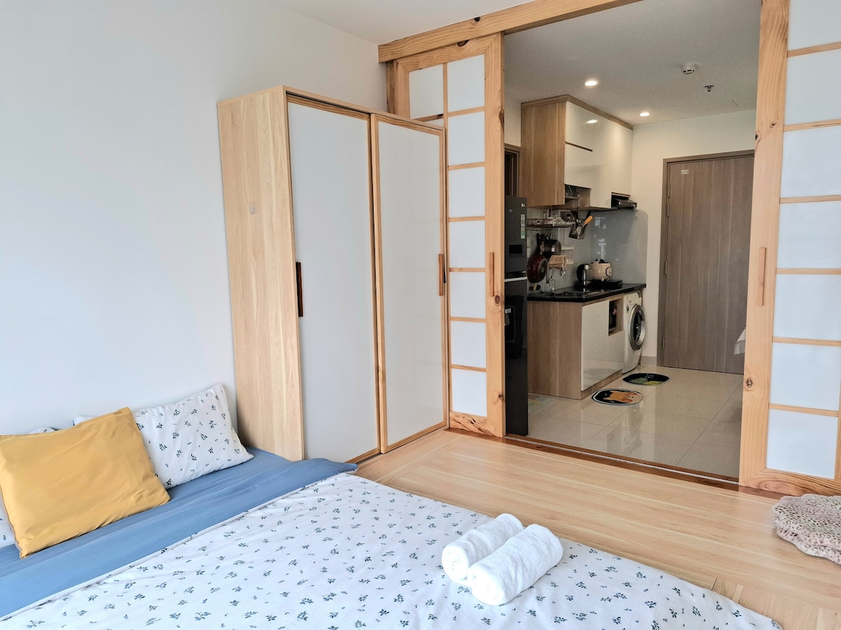 - Căn hộ 1 phòng ngủ rộng rãi, thoáng mát, được thiết kế hiện đại với đầy đủ nội thất cao cấp. - Bếp được trang bị đầy đủ dụng cụ nấu ăn, giúp bạn tự do chế biến những món ăn yêu thích. - Phòng tắm sạch sẽ, có máy giặt riêng, cung cấp khăn tắm, dầu gội, sữa tắm. - Căn hộ nằm ngay trung tâm thành phố, ngay AEON Mall, sân Golf Sông Bé và KCN VSIP 1, thuận tiện di chuyển đến các địa điểm làm việc, vui chơi giải trí.