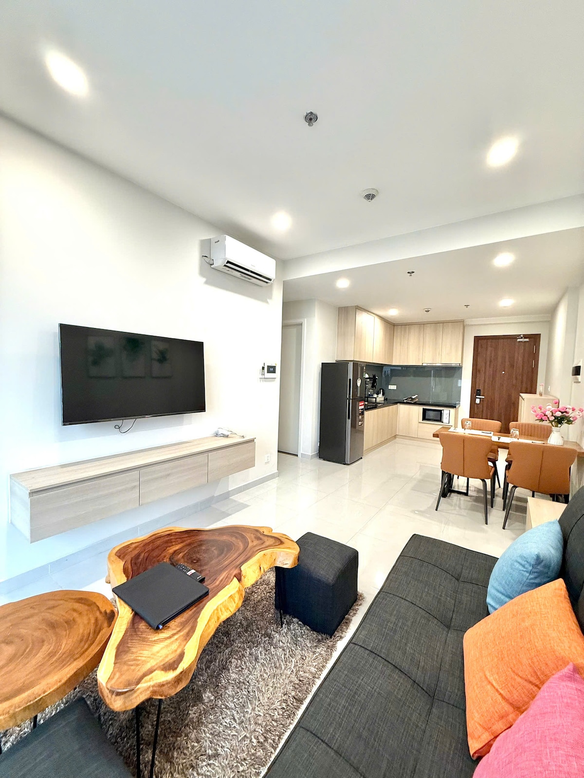 Căn hộ 2 phòng ngủ hiện đại, phù hợp cho nhóm 4 người, mang đến không gian thoải mái và phong cách. Phòng ngủ rộng rãi, nội thất tinh tế, giường êm ái. Bếp đầy đủ dụng cụ nấu ăn, tiện lợi cho bữa ăn tại nhà. Ban công riêng có sân phơi thoáng đãng, giúp kỳ nghỉ thêm tiện nghi. Trang bị sẵn wifi tốc độ cao, TV, máy giặt, điều hòa. Vị trí thuận lợi, dễ dàng di chuyển, thích hợp cho gia đình, nhóm bạn hoặc chuyến công tác dài ngày.