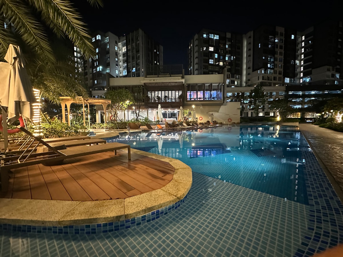 🌿 Trải nghiệm nghỉ dưỡng giữa Hồ Chí Minh City với căn hộ 2PN - 2WC - 2 balcony đầy đủ tiện nghi & bếp riêng, có lò nướng, xấy quần áo vv... Hồ bơi vô cực, jacuzzi, gym, xông hơi, lối chạy bộ & đài ngắm cảnh tầng 5 - miễn phí. Starbucks, Highlands, nhà hàng & phố đi bộ sôi động ngay dưới nhà. Không gian xanh mát rừng cây & hồ sinh thái, thích hợp thư giãn, chạy bộ, đạp xe. Một nơi hiếm có, bình yên như resort giữa lòng thành phố. Cách sân bay chỉ 15 phút di chuyển. cách lõi trung tâm 30 phút