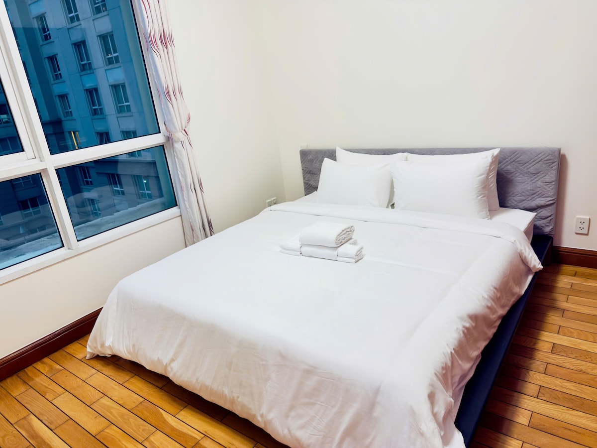 Welcome to our newly launched apartment located in Central 3 – one of the building in the Vinhomes Central Park complex The apartment features a modern and stylish design, with an open view that's not blocked by any surrounding buildings It includes two queen-size beds. The master bedroom is equipped with a projector, perfect for "Netflix and view" The apartment comes with a fully equipped kitchen, iron, hair dryer, and other essentials. Fresh towels can be replaced free of charge upon request