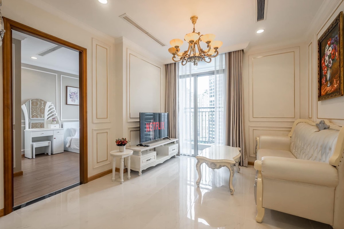 Experience the full spectrum of experiences at this centrally located venue Landmark 81 is the tallest building in Vietnam, high-floor apartments, beautiful view, Nordic style, luxurious, with floating lake, cinema, shopping center, park, 5-star class. . The campus has an area of 20,000 square meters and is the most luxurious urban area in Saigon, Vietnam. The apartment is on the 17th floor of Landmark 6 building, 2 bedrooms, 2 bathrooms. Both bedroom windows and balcony have panoramic views