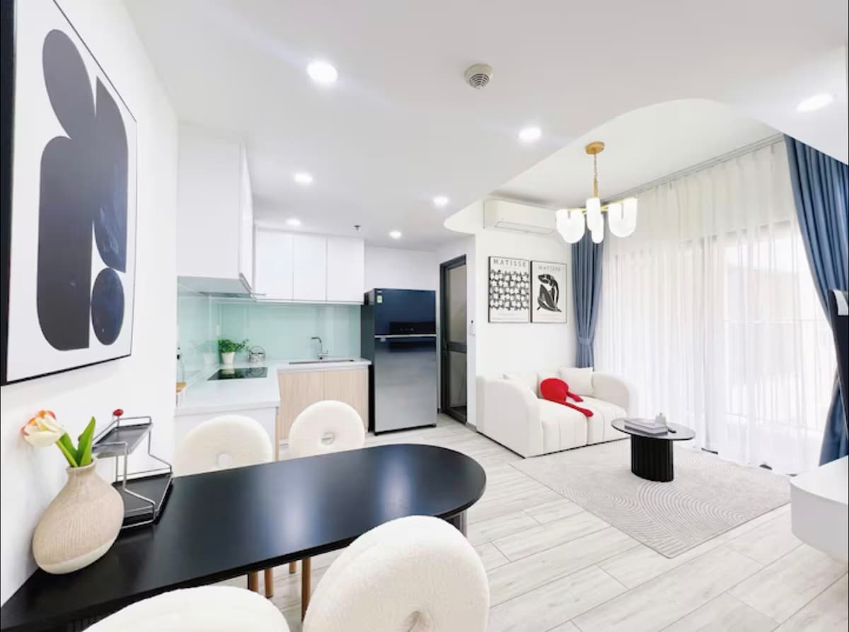 Relax in this serene two-bedroom apartment, perfectly located in the vibrant Thao Dien area. This modern sanctuary offers a peaceful escape with a cozy living space, fully equipped kitchen, and a private balcony with lush views. The comfortable bedrooms and modern bathrooms ensure a restful stay. Enjoy the prime location with access to Masteri’s top amenities, including a swimming pool, gym, and 24-hour security. Tranquil Haven is the ideal choice for a relaxing retreat in the heart of Saigon.
