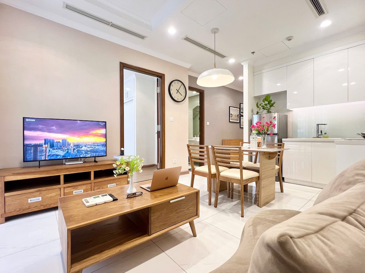 This is an apartment in Landmark 2 building next to Landmark 81. Nice view in central location.From here, it only takes 5 minutes to go to District 1 city center. You just need here to have a commercial center, an amusement park, European and Asian restaurants and a swimming pool and gym.